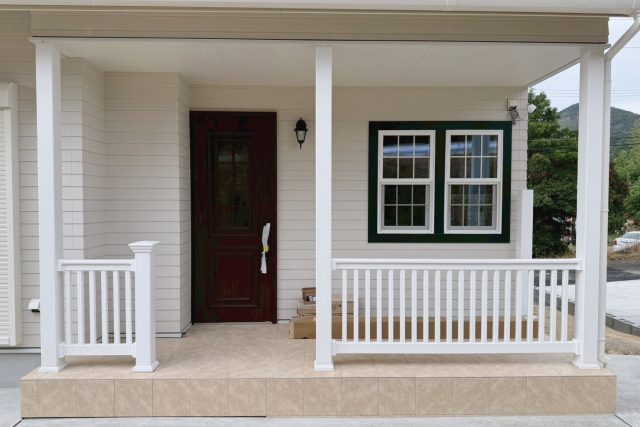M様が希望されていた玄関前のバイナルフェンスを本日施工しました(*^▽^*) 一気に北欧風の可愛いら