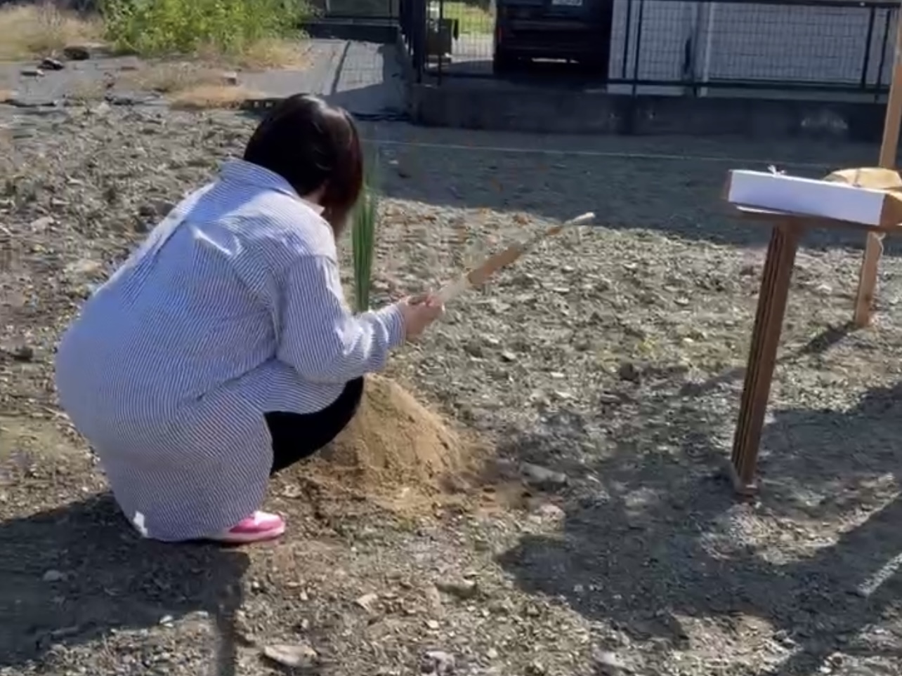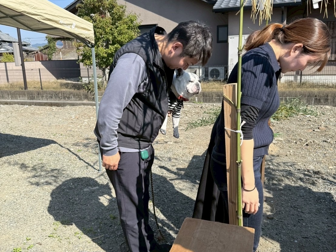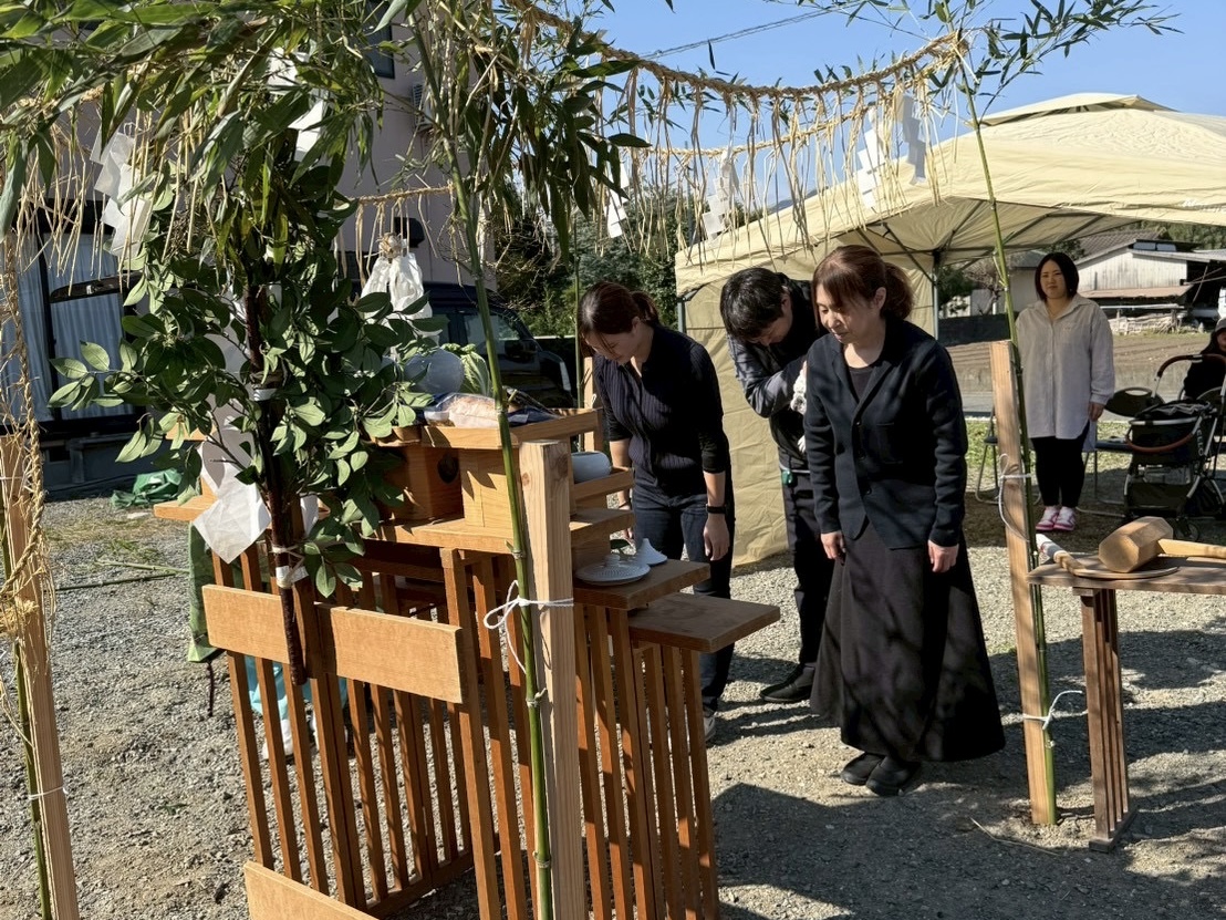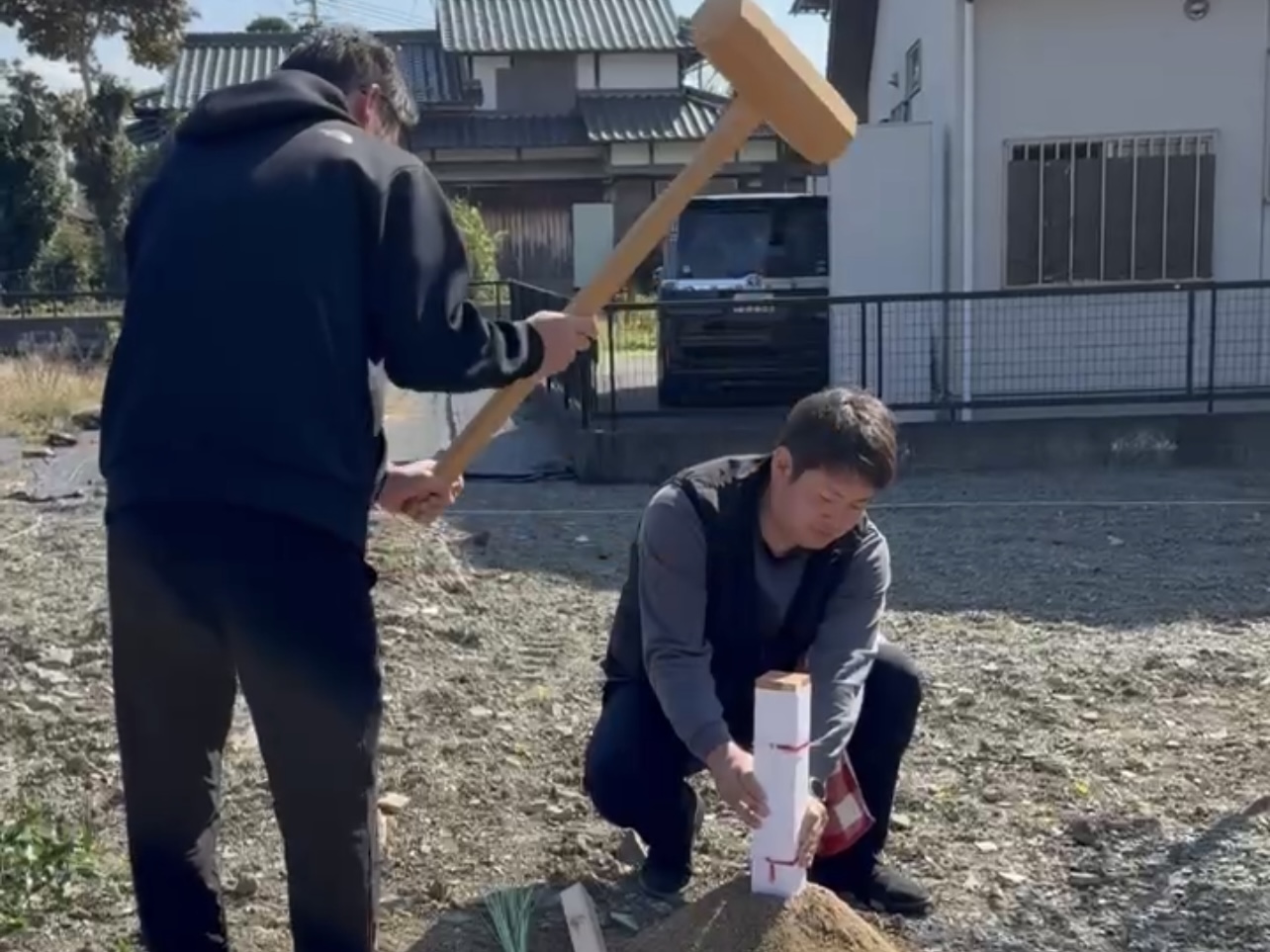 敷地の四方を祓い清め、土地の神様に建築の許可を得るとともに、工事中の安全を祈ります。