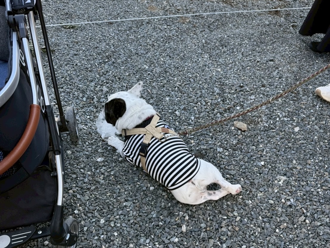 日影になっている砂利の上が冷たくて気持ち良い様子です♡