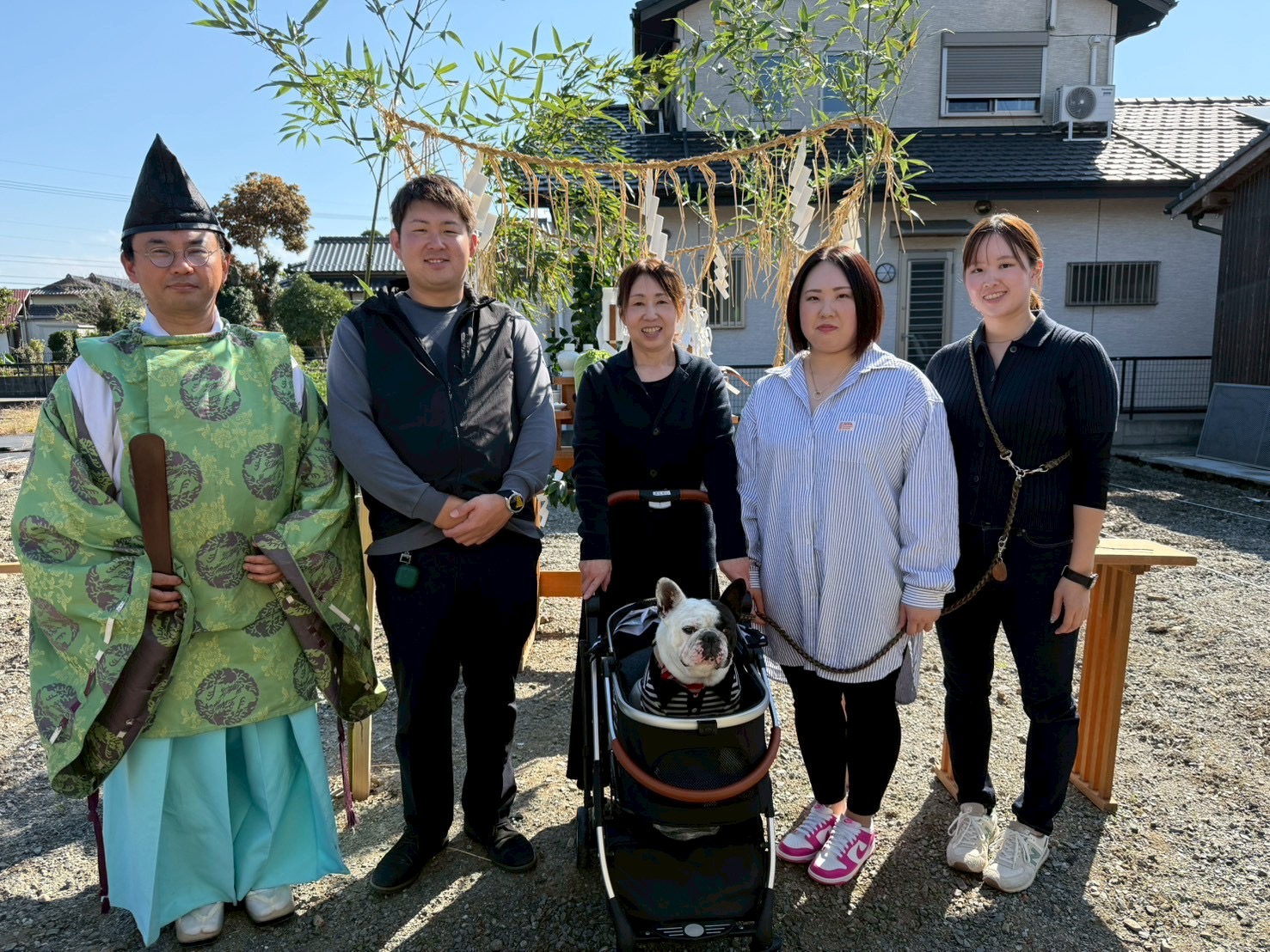 無事に地鎮祭が終わりましたので、家族で記念写真を…☆彡