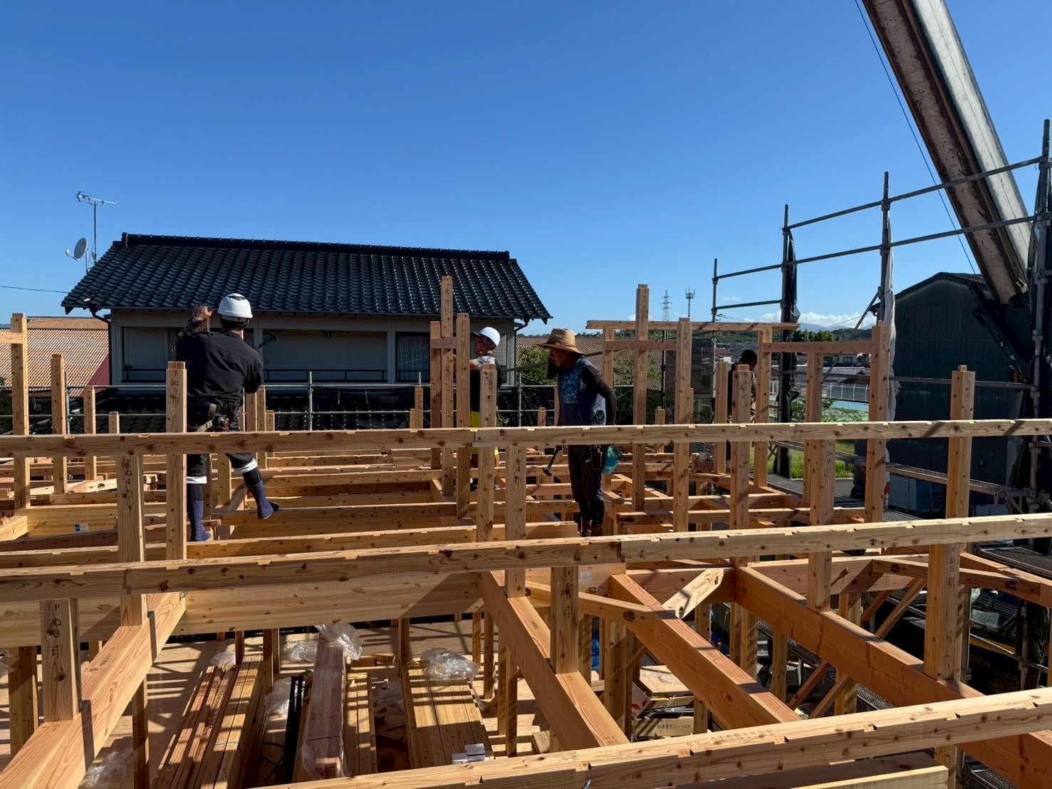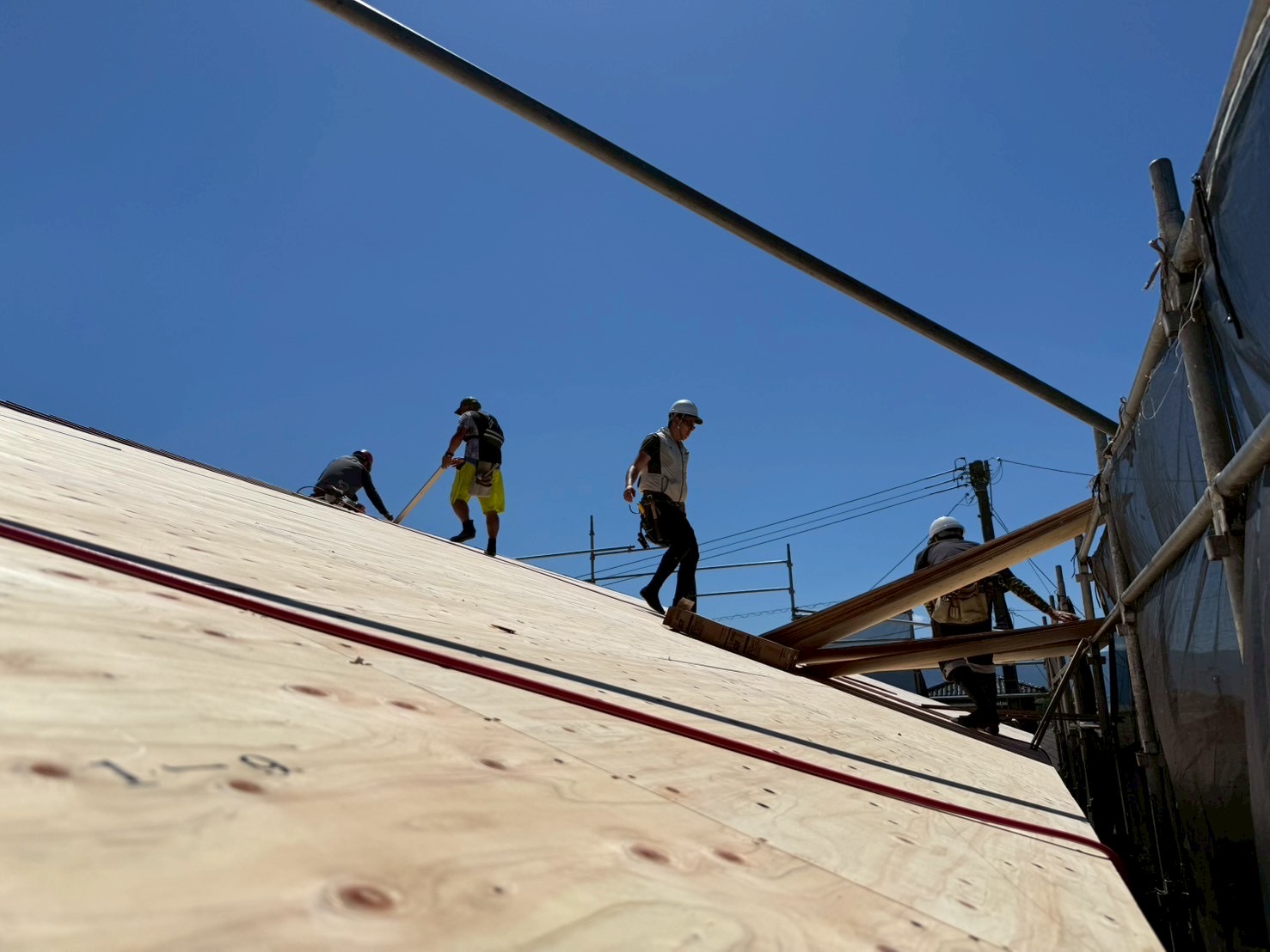大工さんたちは暑さに負けずテキパキと作業を進めていきます。