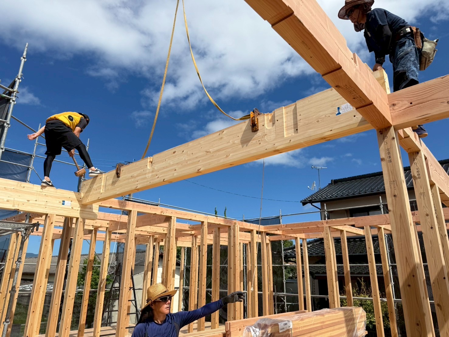 最高気温35℃の猛暑の中、棟梁、大工さんたち、本当に頑張ってくれました!!