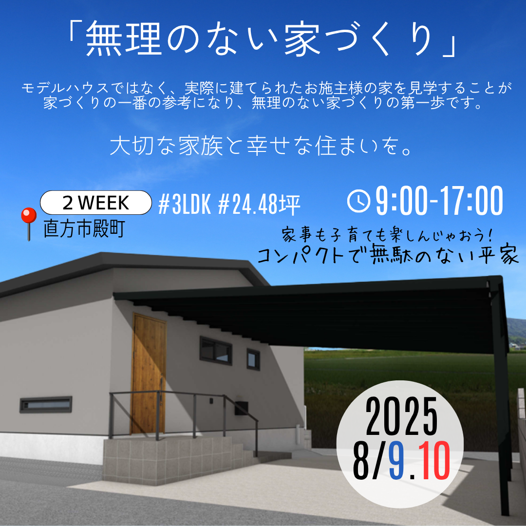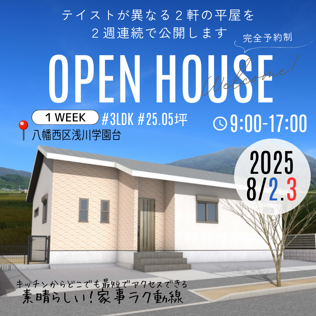 【受付終了】2週連続 平家完成見学会 8/2.3-8/9.10 2025/07/22 1WEEK in 八幡西区浅川学園台 ◇8/2sat3sun →コチラ 2WEEK in 直方市殿町 ◇8/9sat10sun →コチラ 皆様のご来場、心よりお待ちしております(*^-^*)