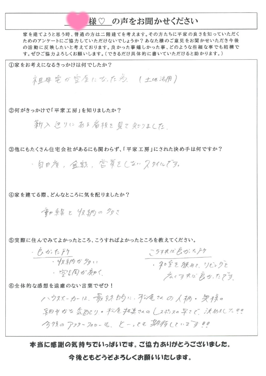 これからもH様ご家族が幸せに暮らせますよう祈っております。これからもよろしくお願いします☆彡