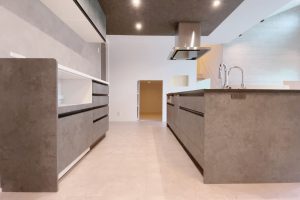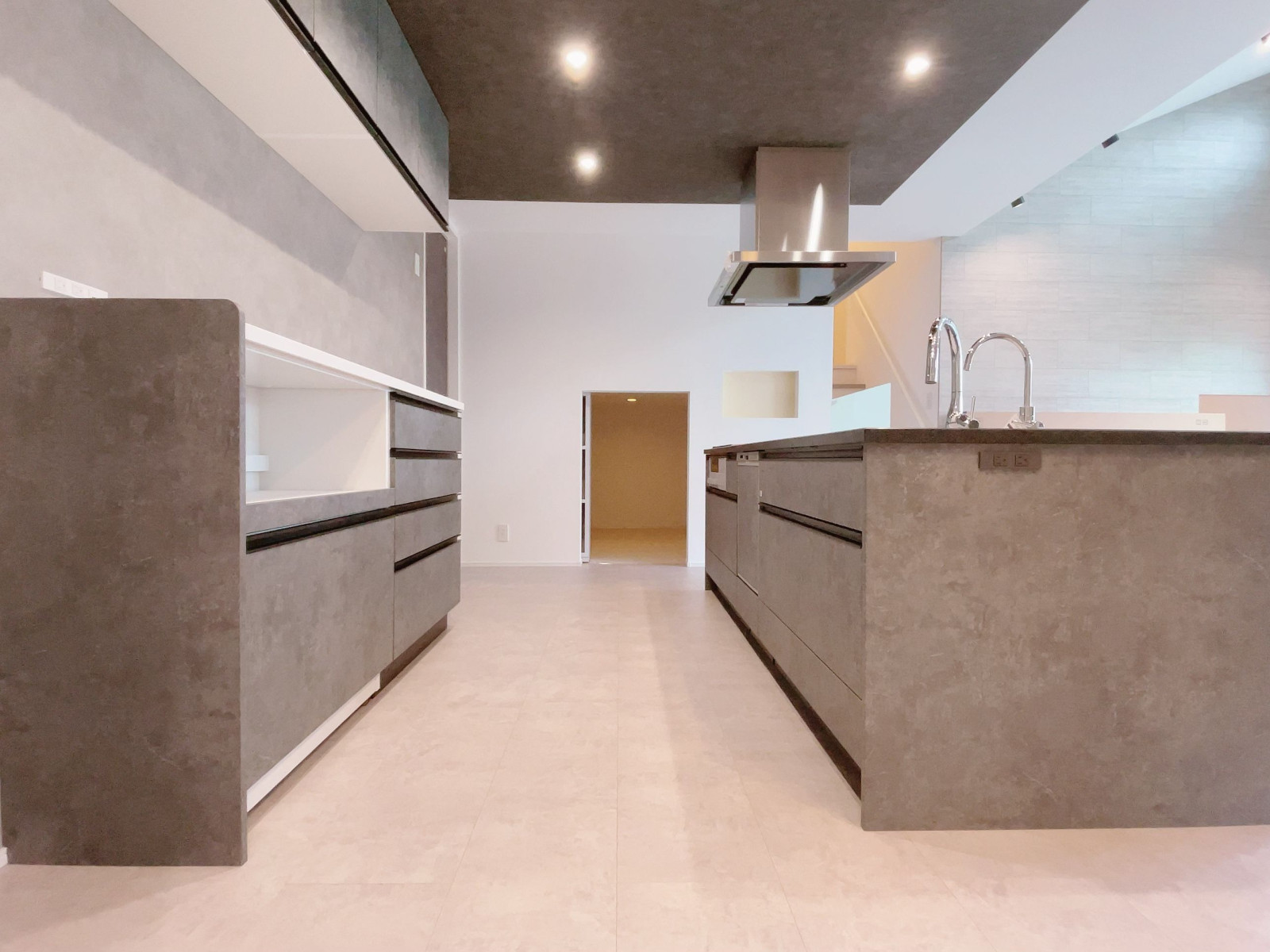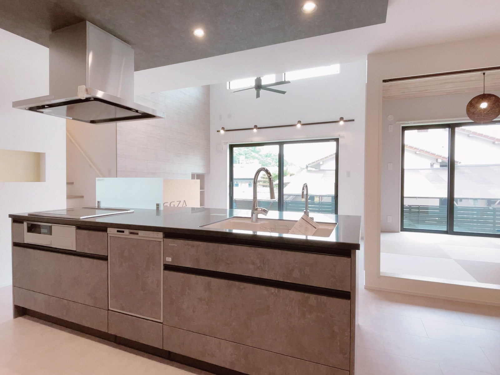 LDKの真ん中にアイランドキッチンを設置。タカラスタンダードのオフェリアなので、前面収納は奥行きもしっかりあります♪